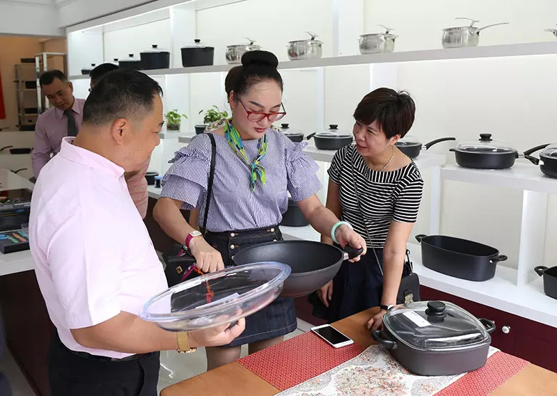斯尼次拉.迈可先生向到场嘉宾介绍家族企业产品SKK锅具的使用方法