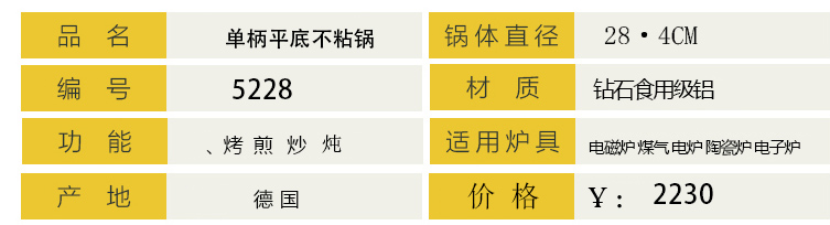 产品描述 · 钛2000不粘锅的表面是密封手工铸造铝合金 · 散热锅底厚度10mm, · 锅底在高温下不变形 · 抗粘性极强,表面涂层适合煎炒 · 便于清洗 | |