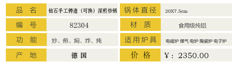 钻石手工铸造(可换)深煎炒锅 Ø20cm24cm26cm28cm32cm