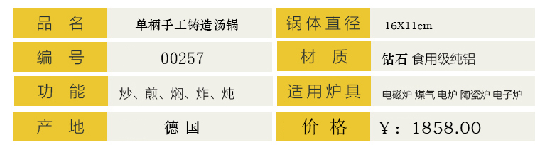 上一条:钻石手工铸造开口笑汤锅奶锅 Ø18cm 下一条:钻石手工铸造炖锅汤锅带玻璃锅盖